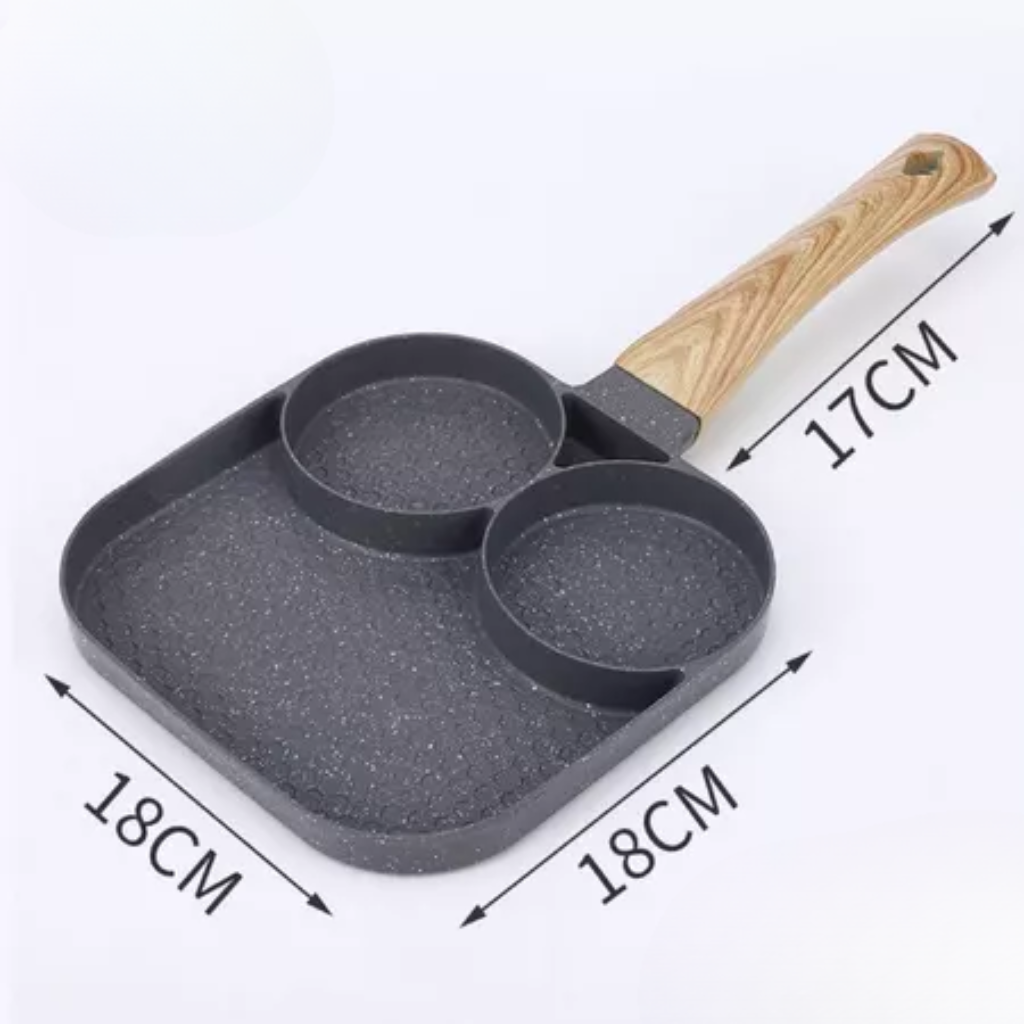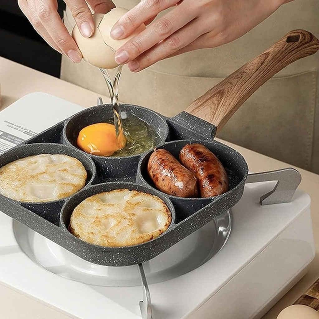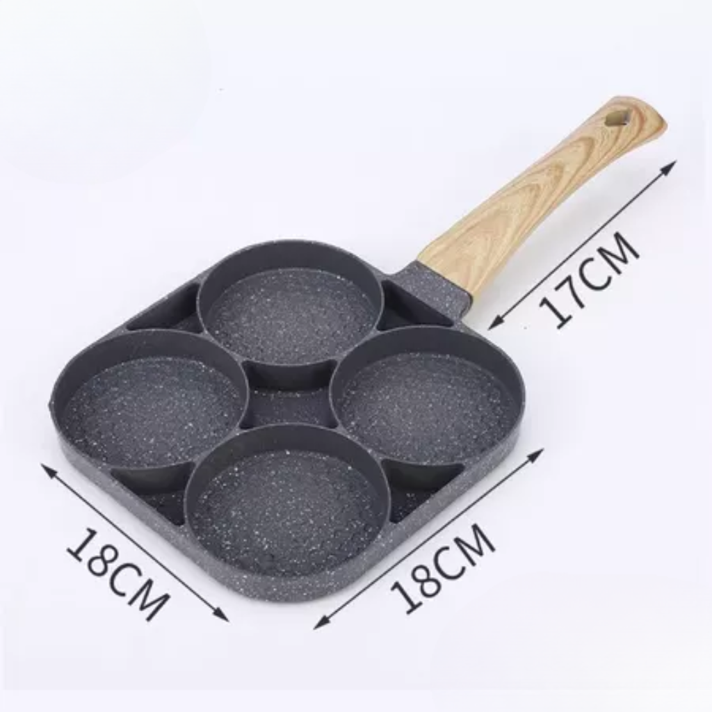 es perfecta para quienes buscan practicidad en la cocina. Con cuatro cavidades, permite freír huevos, preparar panqueques, mini hamburguesas y mucho más de forma rápida y uniforme. Fabricada con recubrimiento antiadherente de alta calidad, evita que los alimentos se peguen, reduciendo el uso de aceite y facilitando considerablemente la limpieza.